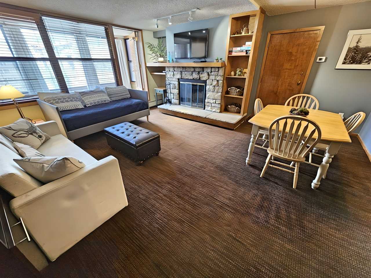 Thi lockoff condo is located on the 4th floor of Village Square in the Center village of Copper Mountain. Experience all Copper Mountain has to offer from this centrally located studio condo! The King-sized bed allows two guests to relax and enjoy this space. This condo is just a short four-minute walk to the slopes or to the Woodward barn, and is right in the middle of all the summer activities that Copper has to offer. Very Spacious. Great for larger families as well.