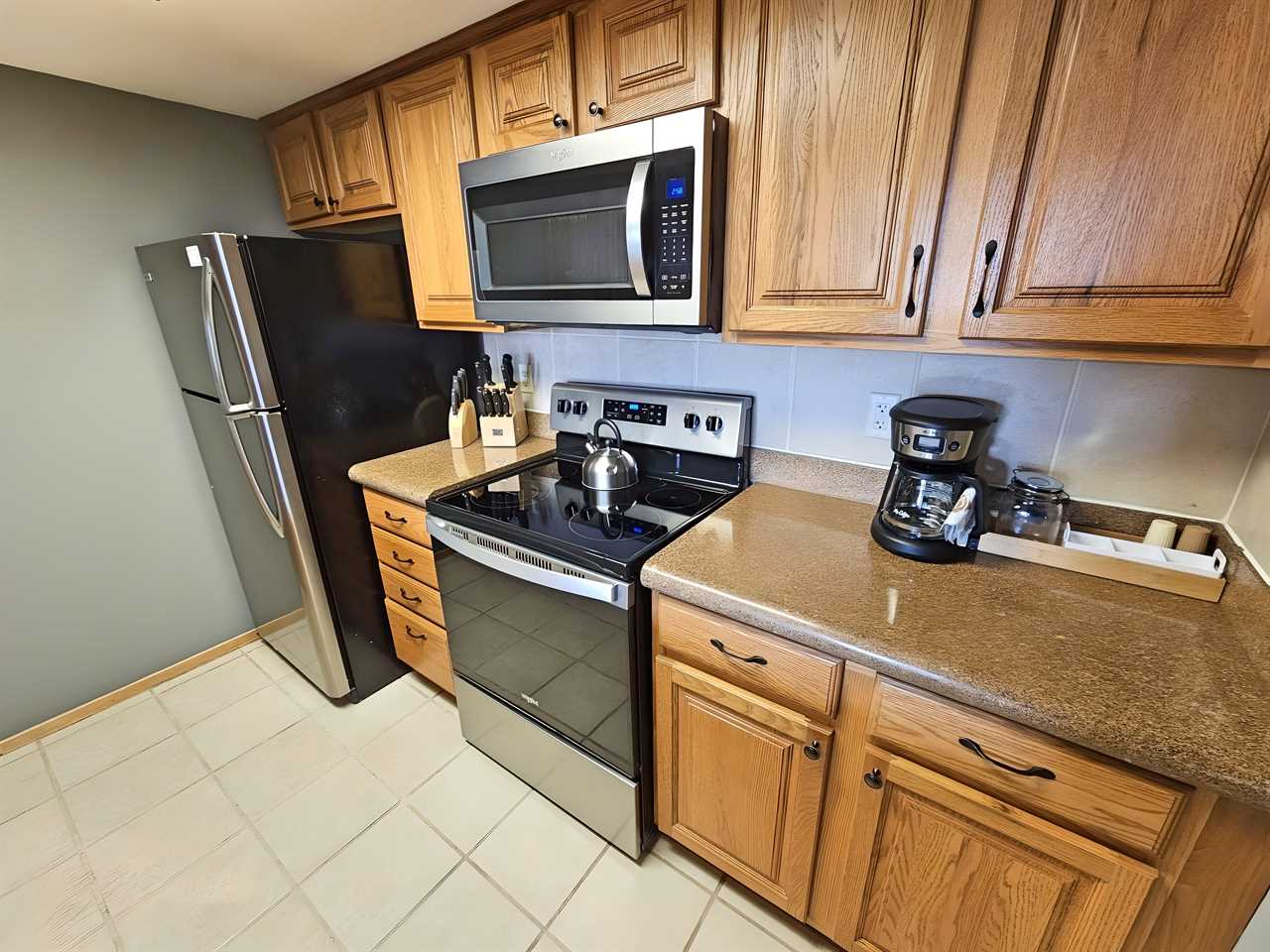 The main living area has the setup of a queen-sized murphy bed, twin sized day and bed futon in the separate sun room allow four guests to relax and enjoy this space. A full kitchen with updated stainless-steel appliances and dining area makes cooking and eating in the unit a breeze.