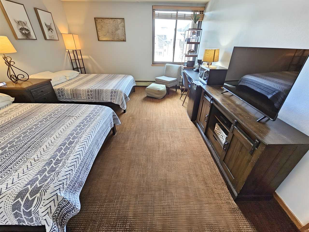 This comfy studio condo is located on the 4th floor of Village Square in the Center village of Copper Mountain. Experience all Copper Mountain has to offer from this centrally located studio condo! The two queen beds allow four guests to relax and enjoy this space. This condo is just a short four-minute walk to the slopes or to the Woodward barn, and is right in the middle of all the summer activities that Copper has to offer.